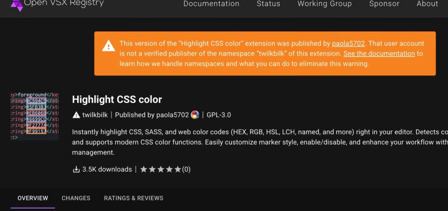 Los nombres de algunas de las extensiones se enumeran a continuación. Desde entonces, Open VSX ha tomado medidas para eliminarlos del registro.